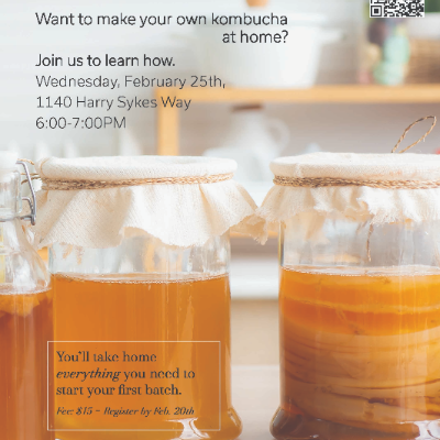 Kombucha is a fermented tea beverage that has gained popularity in recent years due to its potential health benefits. However, kombucha and the process of fermenting are not new food preparation methods, with the beverage dating as far back as 220 BC. Making kombucha at home is not a difficult process, but there are important food safety considerations and steps to take to ensure the product is safe to consume. Join us for a kombucha brewing class on February 25th to learn the science behind fermenting, how to safely home brew, and taste varieties of kombucha from the demonstration. Attendees will leave with a home brewing kombucha kit, including a SCOBY, 1 gallon jar, pressure rated glass bottle, tea bags, sugar, and recipe booklet. Note: Kombucha is not an alcohol product.